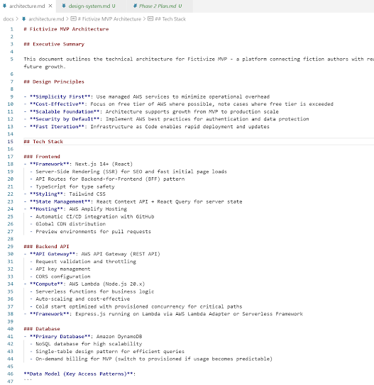 I would like an architectural framework for building my SaaS business that will connect authors to readers. This SaaS application will run on AWS and should make use of appropriate AWS PaaS services. It will be deployed via Terraform and use GitHub Actions for CI/CD. Propose a full tech stack for our MVP. Reference the PRD in the docs and put your recommended architecture in a file called architecture.md in the docs folder. Keep it simple, this is just the MVP and we can add advanced features later.
