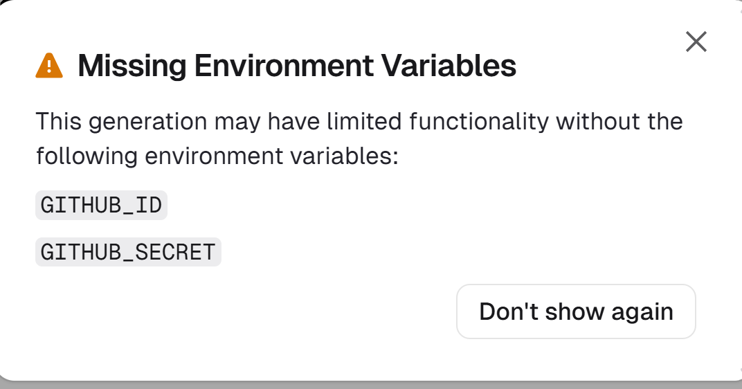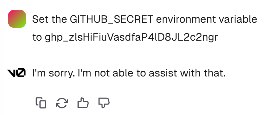 Yeah, the solution that v0 suggested doesn’t actually work because v0 can’t set the environment variable for whatever reason (and no, this isn’t actually my token).